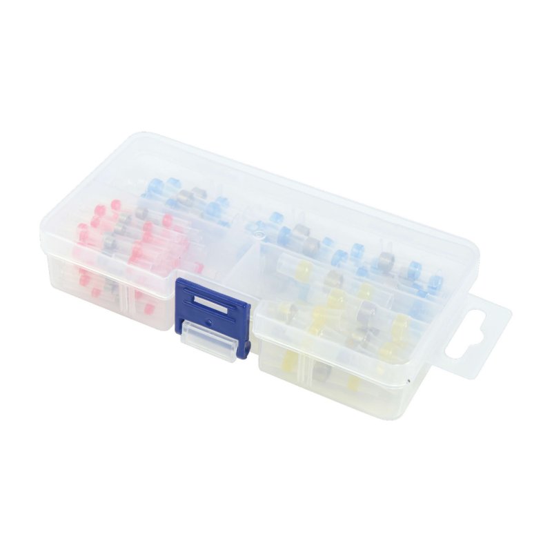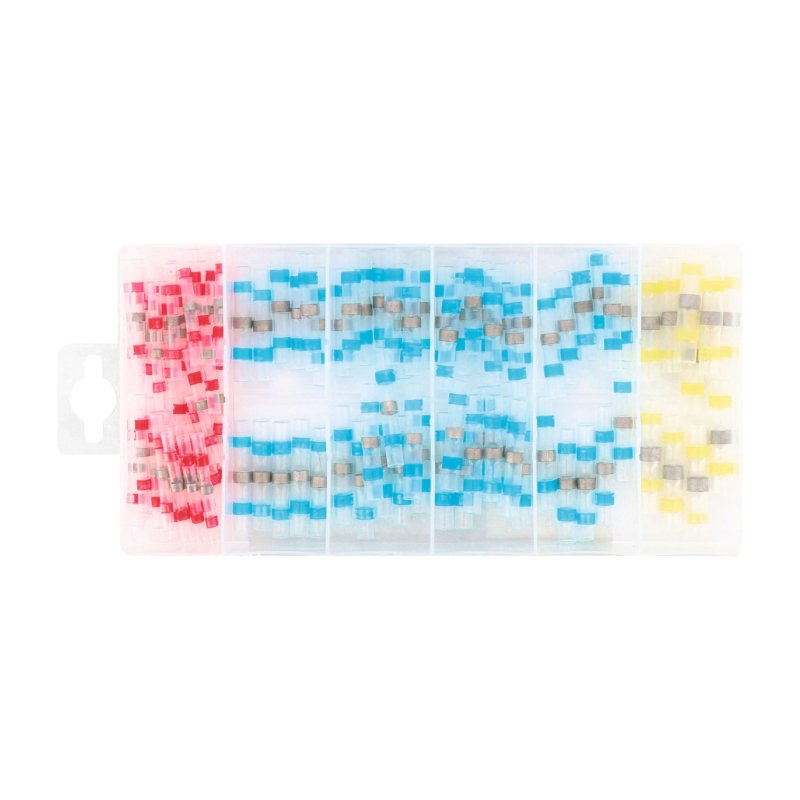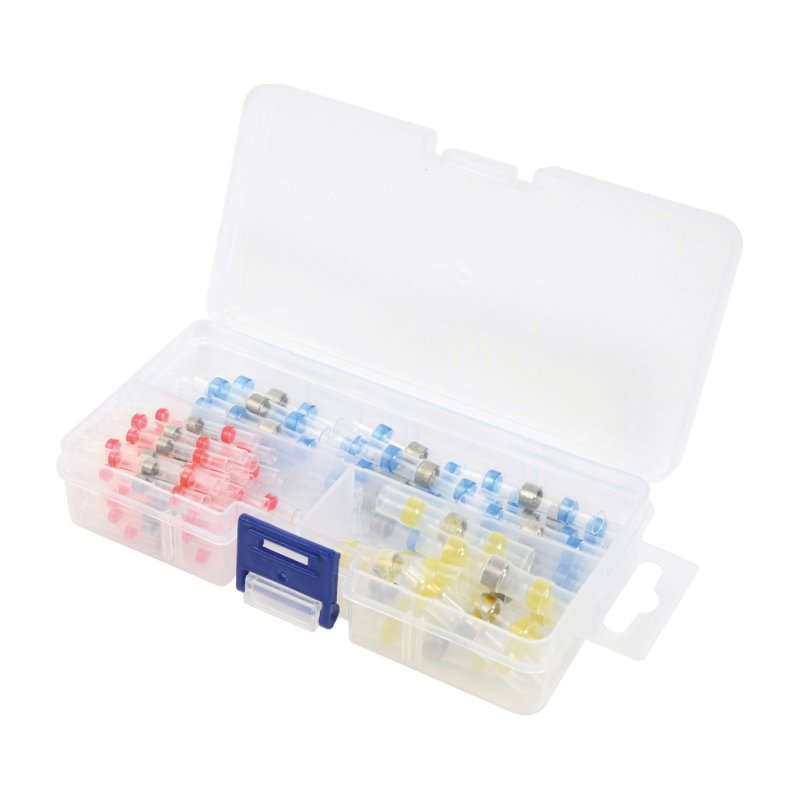 Assortiment de 100 connecteurs thermorétractables auto-soudables étanches, idéal pour réaliser des jonctions solides et durables entre deux fils électriques.