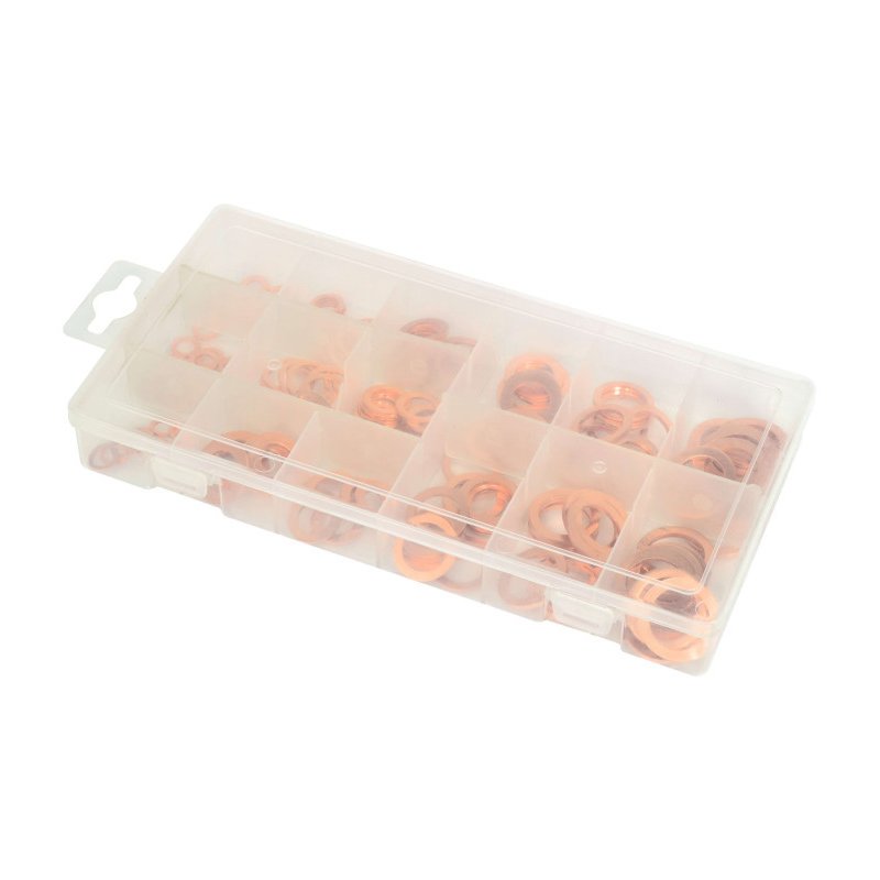 Coffret de joints cuivre permettant de s'adapter à des bouchons de : Ø 5x10mm à 17,5x24mm.