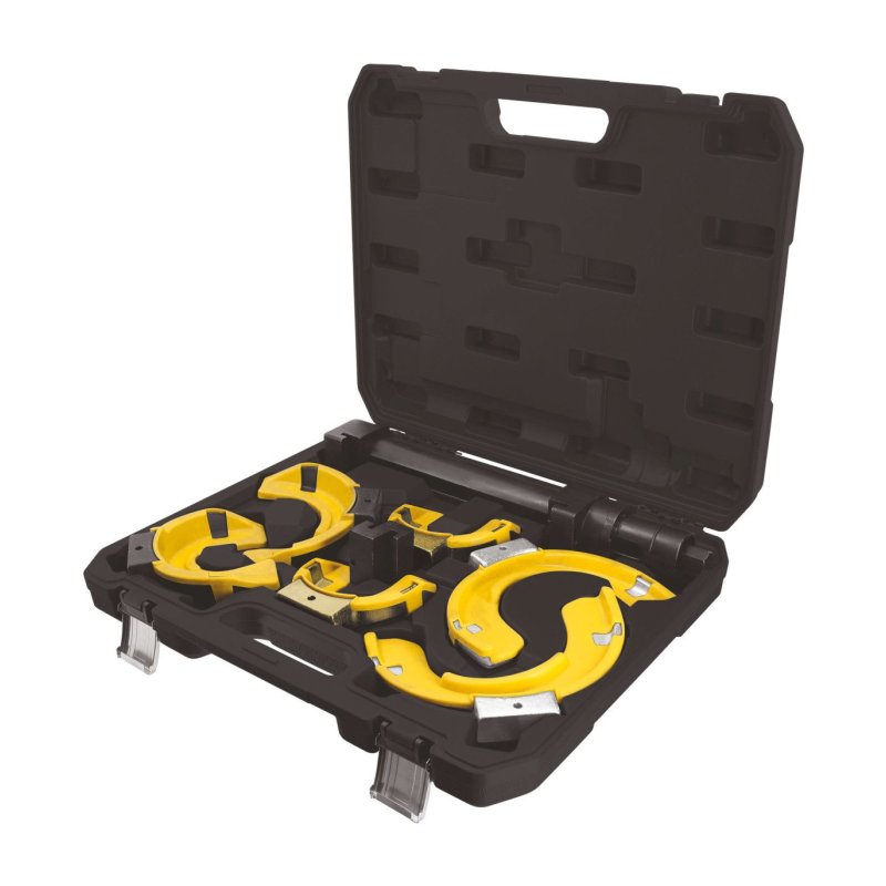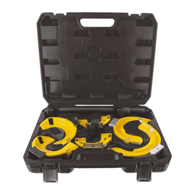 Ce coffret de 26 pièces est conçu pour le montage et le démontage précis des silent-blocs et roulements. Il comprend 4 tiges de pression équipées de butées à billes pour réduire l'effort, ainsi qu'une large gamme de douilles robustes adaptées à différents diamètres. Les plaques d'appui et de pression assurent un maintien sécurisé lors des interventions. Solide et complet, ce kit professionnel facilite les opérations de maintenance et garantit un travail fiable et efficace.
